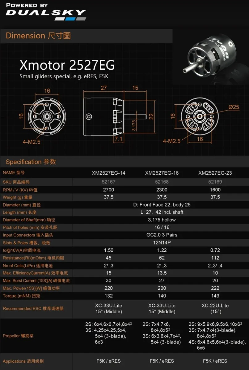 The Dualsky XM2527EG-23 is a high quality cased outrunner for models weighing 250 – 700g.