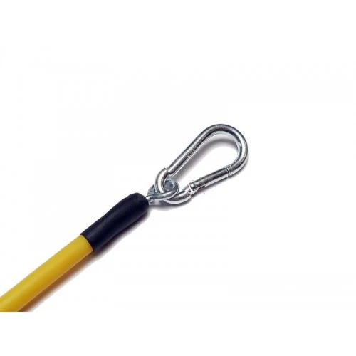 Fix the high start by attaching the yellow silicone tubing to a dog walker’s stake using a mountain climber’s carabiner (not supplied).