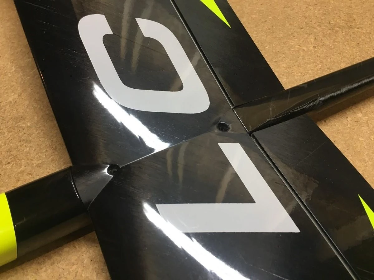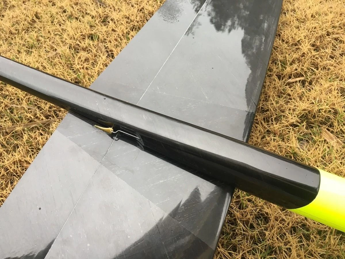 The wing is beautifully molded from spread carbon with solid core construction, and a good surface finish. The wing aerodynamics are based on the Gerald Taylor’s Synergy airfloil family modified to work at the lower wing chords of this high aspect ratio design. All the current stock have 2 piece wings, making storage and transport easier.