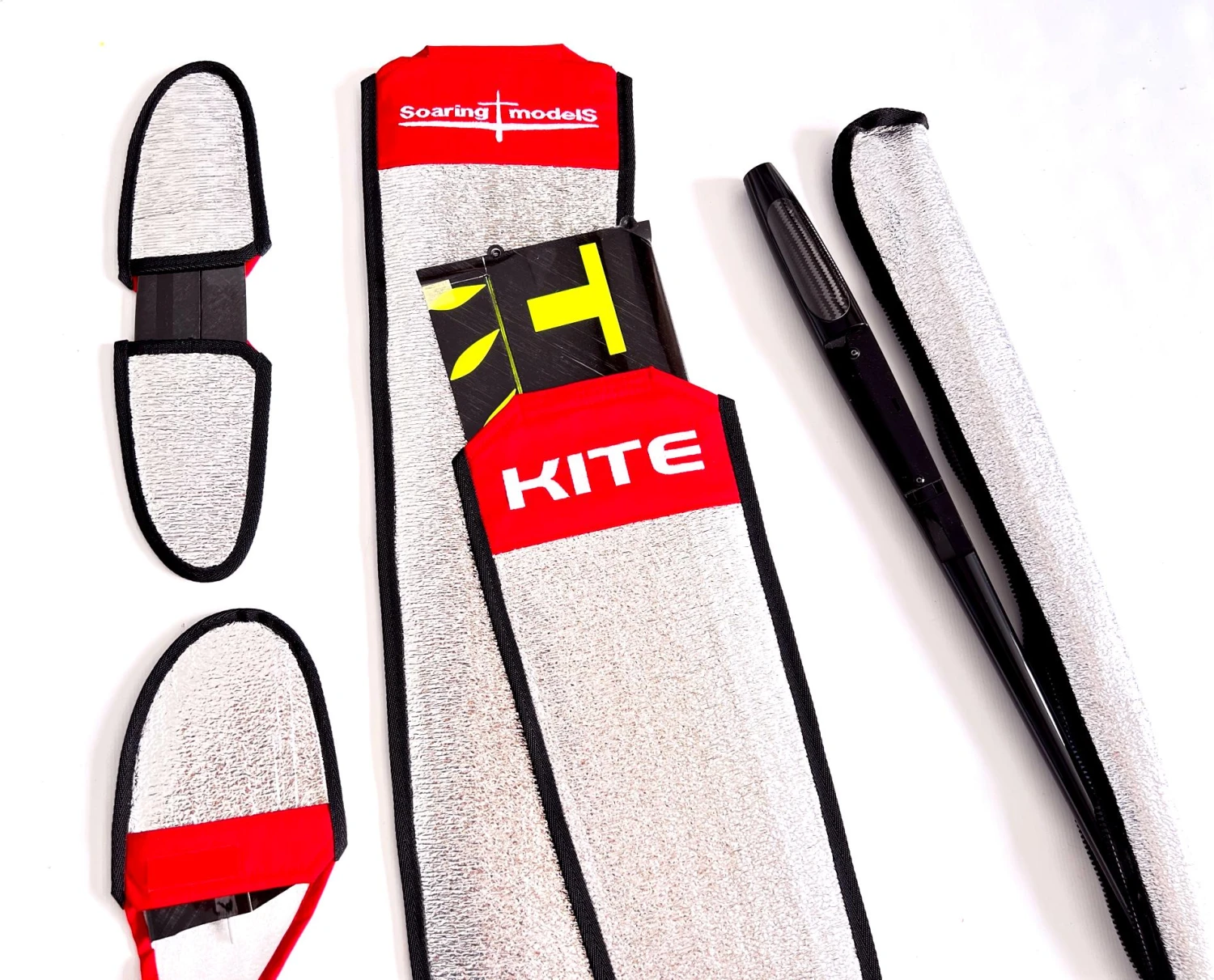 A set of nicely made wing and tail bags for protecting the Kite DLG and eDLG wing, tailplane, fin and fuselage.