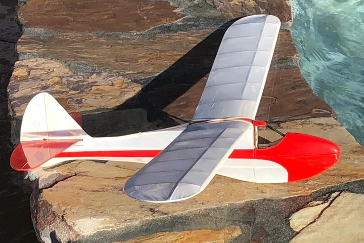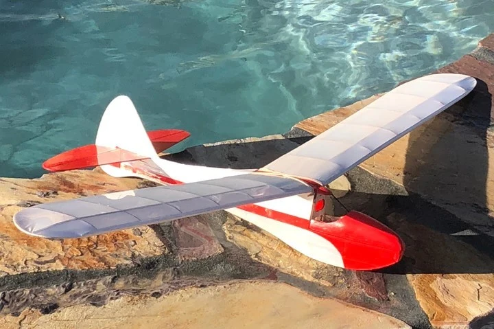 The Micro Sinbad is truly micro with just a 86cm (34″) wing span and an all up weight under 55g (2 ounces)! Yep, you read that right. You will need some truly tiny radio gear. You can use something like a Parkzone style brick, or you can use 2g servos and a micro receiver. Use Feather Cover, Oralight, Solite, Parklite or free-flight type lightweight covering materials to avoild warping the delicate wing structure.