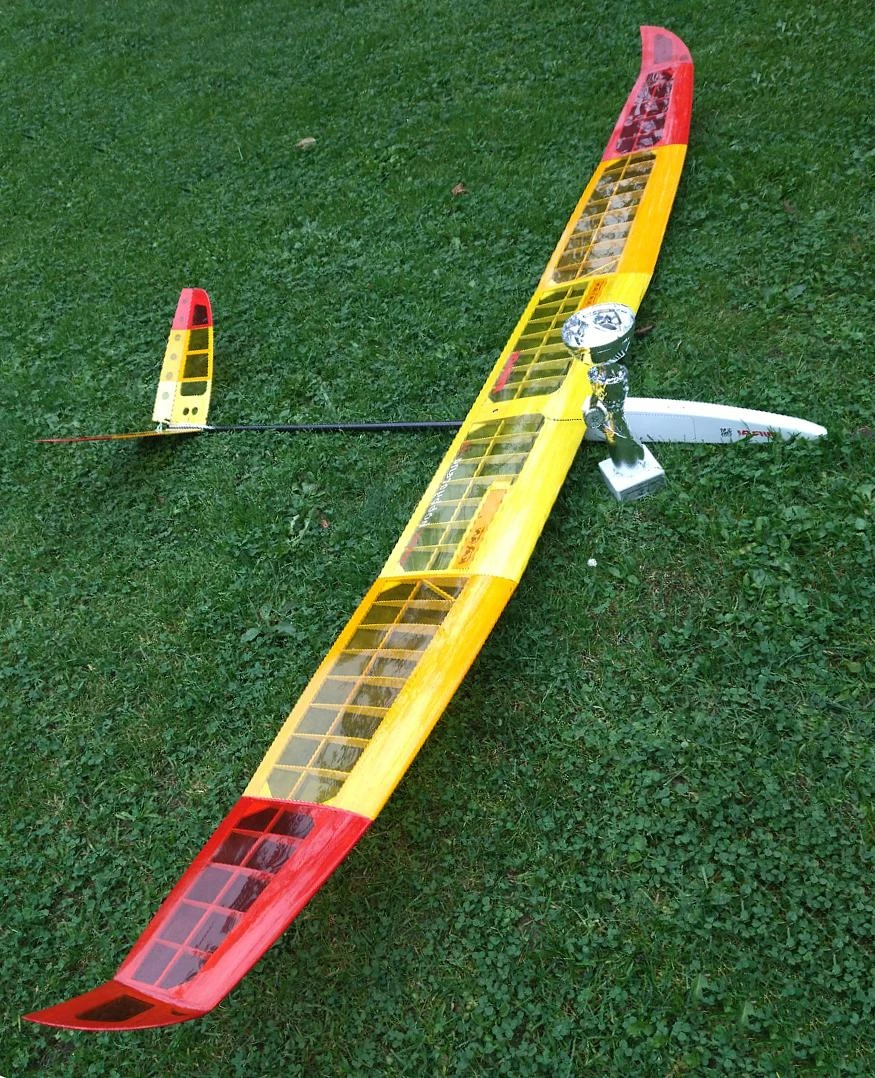These 2m models, launched using a hi-start and controlled only by rudder, elevator and spoiler have their special competition category, now called F3L, in which is not about showing off, but about flying with similarly like minded model fliers. There is also a category F5-RES for two-meter gliders with electric propulsion.