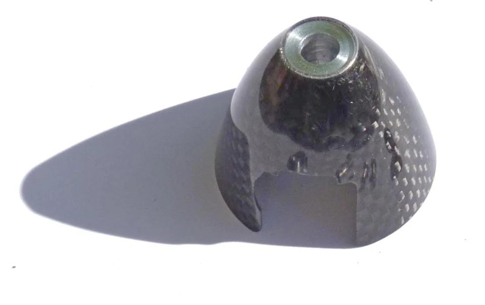 Repaclement molded 38 mm carbon spinner cone for GM F5J spinner assemblies.