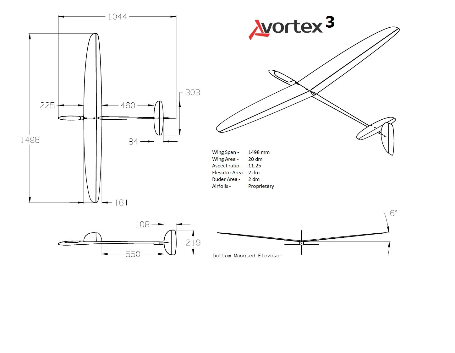 Lots more info in this RCGroups Vortex 3 thread and this Vortex official build thread. We are stocking the two piece wing version (2pw) with a bottom mounted tailplane, in various layups.