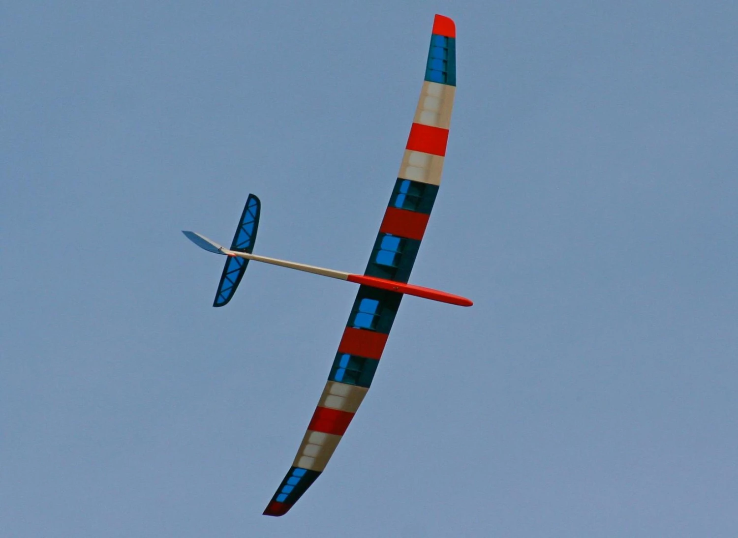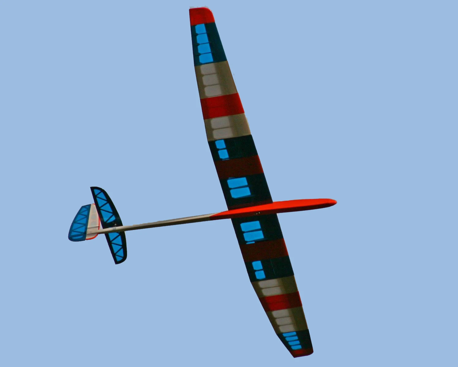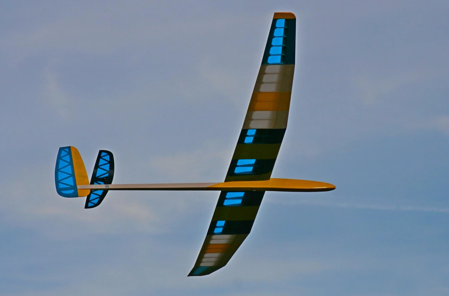 The large 2-part spoilers allow almost vertical descents without an increase in speed. The wing separates into three panels and the tailplane is removable making the model very easy to transport.
