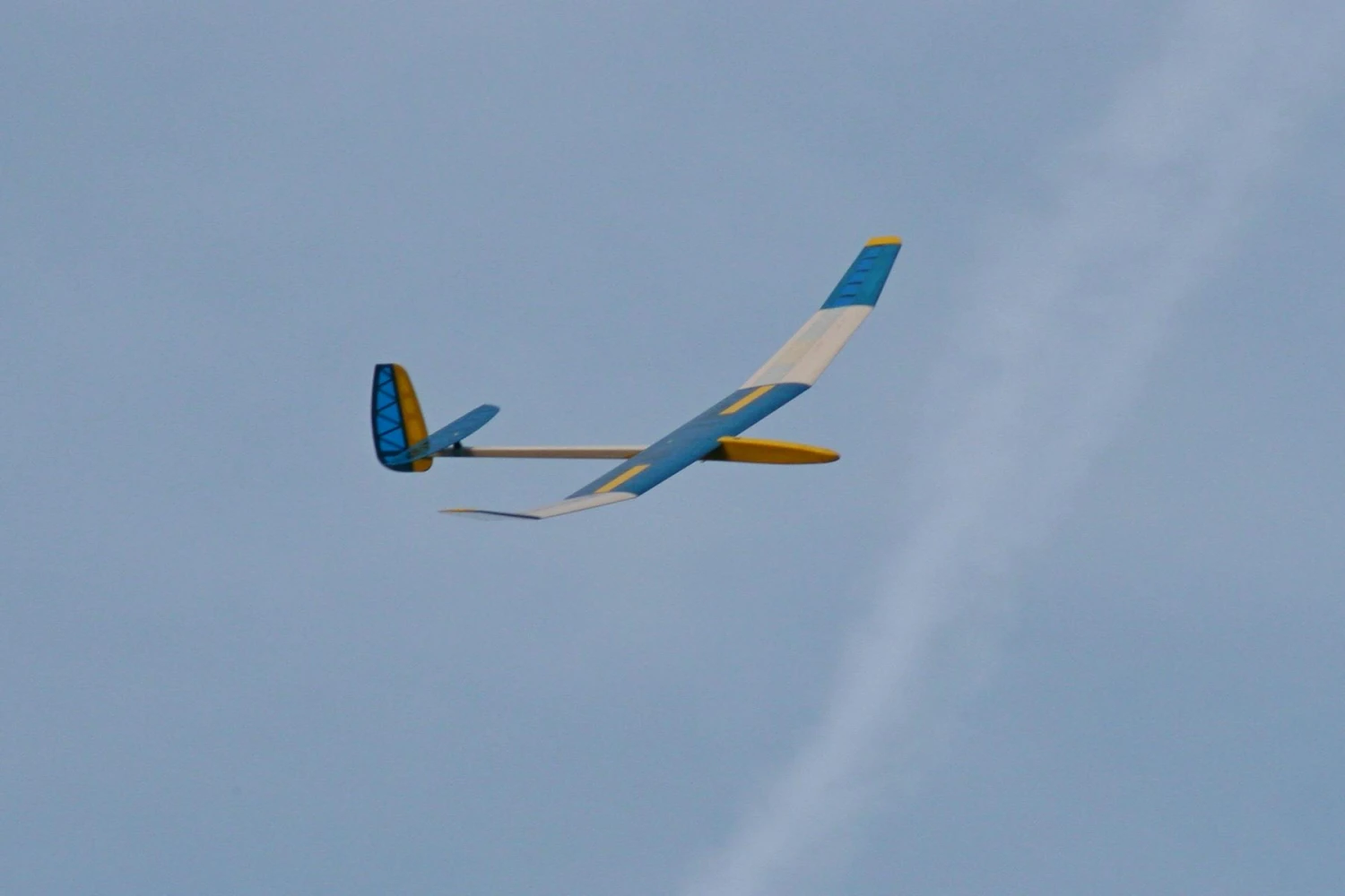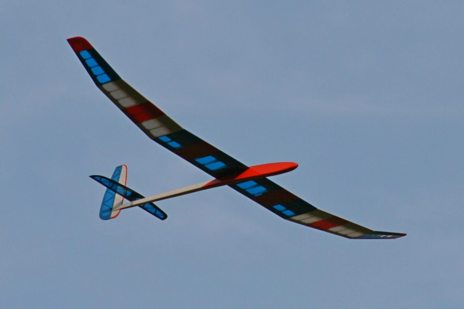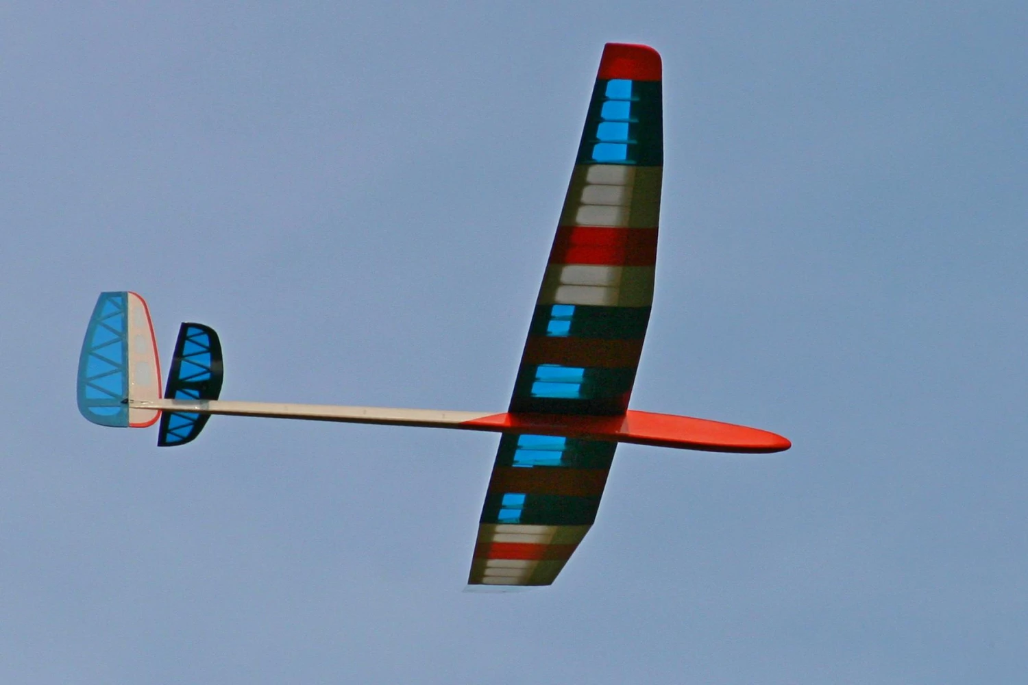 The large 2-part spoilers allow almost vertical descents without an increase in speed. The wing separates into three panels and the tailplane is removable making the model very easy to transport.